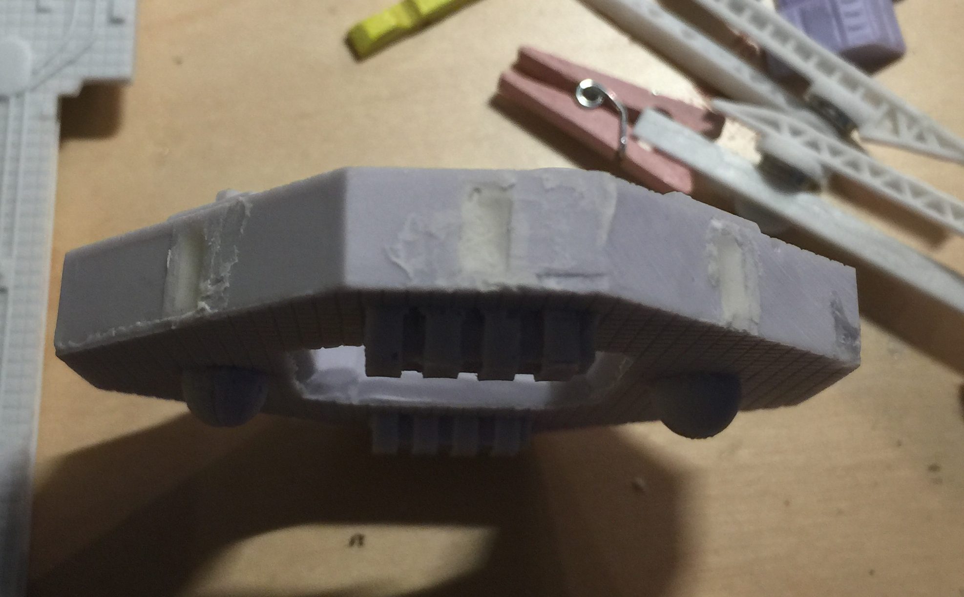 Another shot showing the filled in and sanded slot on one side and the holes made on two of the short sides.